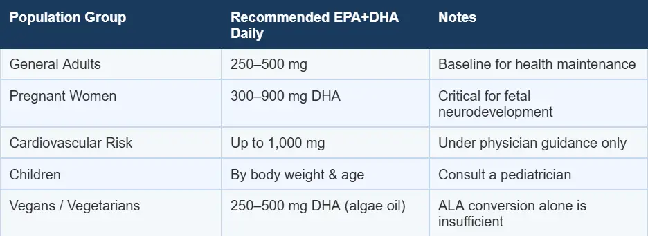 Several factors affect how much omega-3 an individual needs. Age affects fat absorption in older adults. Dietary patterns matter too; those with high omega-6 intake need more omega-3 to balance it out. Pregnancy and inflammatory conditions also play a role. A healthcare provider can help determine the right amount based on personal health goals and lab results.